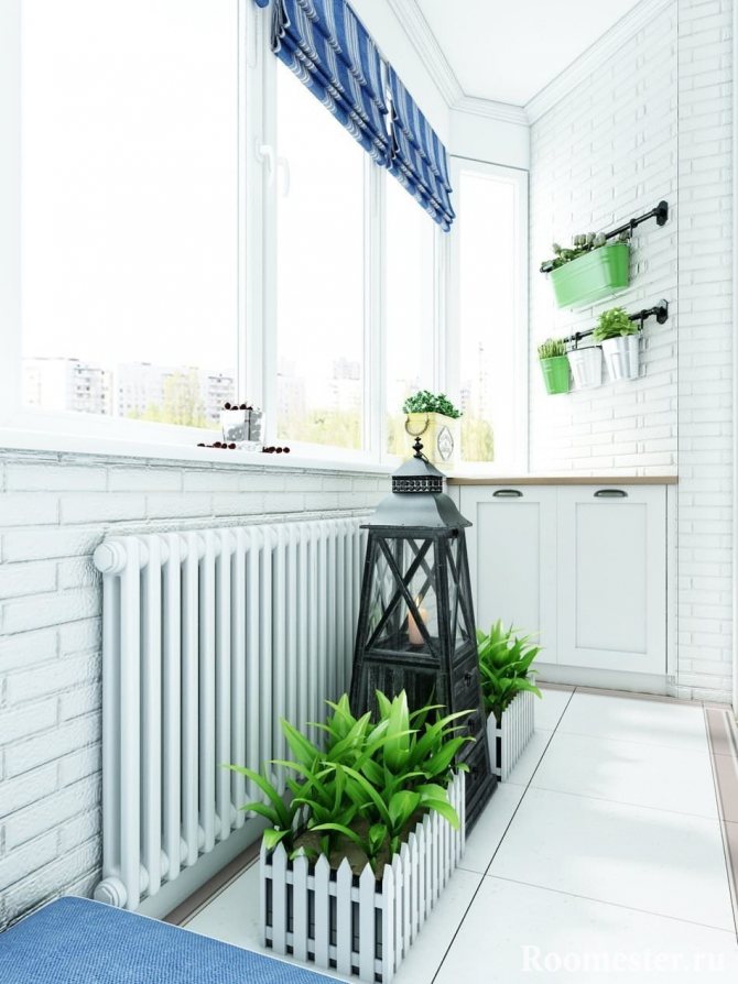 Cette option est pertinente pour les appartements avec des fenêtres donnant sur le côté ensoleillé. Un mini-jardin sera une bonne option pour ceux qui n'ont pas de chalet d'été, mais qui aiment bricoler le sol. Il est facile de faire pousser des tomates, des radis, des tournesols décoratifs, des concombres, des herbes, des oignons et des fleurs d'intérieur sur le balcon.