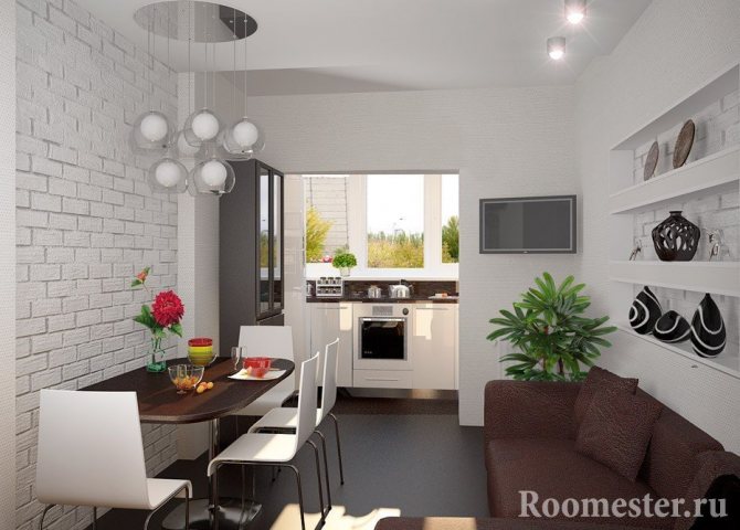 De plus, la cuisine combinée avec le balcon deviendra beaucoup plus lumineuse. Le réaménagement est de deux types: