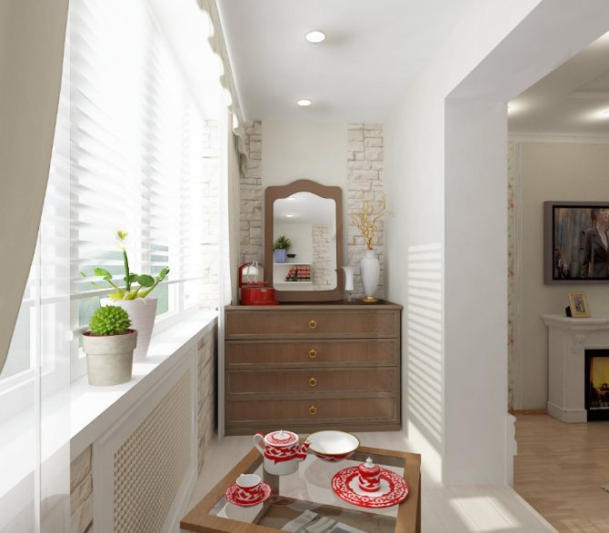 La dernière étape de l'installation est la combinaison visuelle de la loggia avec la pièce, avant la mise en œuvre directe de laquelle il est nécessaire de réfléchir à la conception de la pièce.
