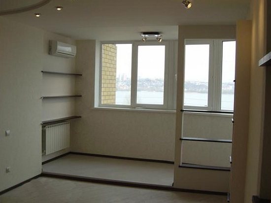 Il est recommandé de combiner une loggia avec une pièce, dont le coût est largement déterminé par le montant des fonds investis dans l'organisation du système de chauffage, pendant la saison chaude, car cela contribuera au séchage le plus rapide de les surfaces finies. Après avoir effectué les principales mesures d'isolation, procédez à l'organisation du chauffage dans la pièce unie. Souvent, la batterie de chauffage est située sous la fenêtre du balcon, et comme cette partie du mur est sujette à la démolition pendant le processus d'unification, il devient nécessaire de transférer le radiateur sur le balcon ou un mur adjacent.