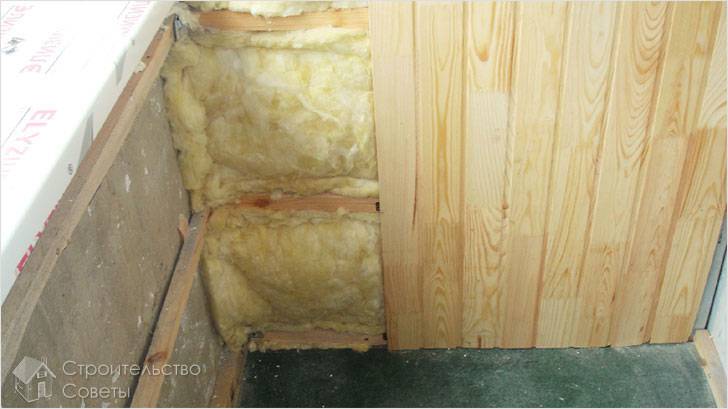 Parallèlement les uns aux autres dans un plan, des blocs de bois sont installés avec un pas de 30 à 40 cm, de la laine minérale ou de la mousse est placée entre eux. Toutes les fissures formées lors du processus d'installation peuvent être scellées avec de la mousse de polyuréthane. En hiver, une mousse de polyuréthane spéciale est utilisée, qui a les propriétés de durcir à basse température de l'air.