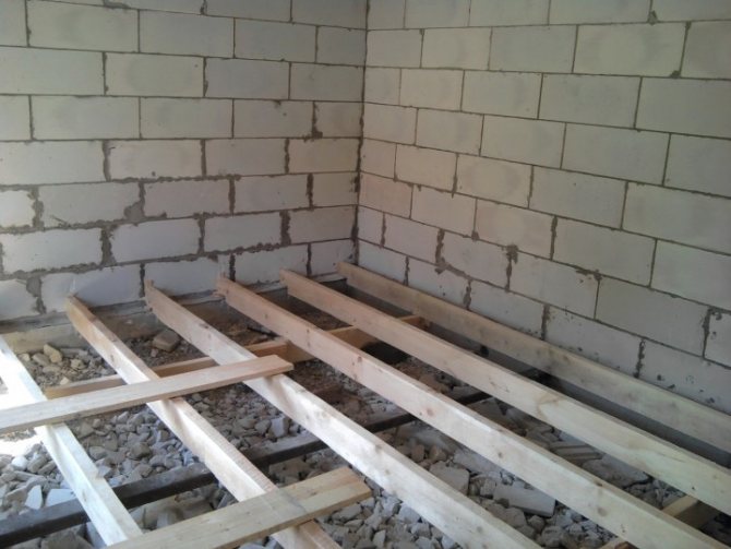 Pour poser le matériau isolant thermique sur les murs, des blocs de bois d'une épaisseur égale à l'épaisseur de la couche isolante sont pilés à des intervalles égaux à sa largeur.