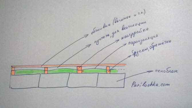 Pour maintenir l'espace de ventilation requis, vous devrez coudre sur un contre-treillis - il est créé à partir de poutres montées dans le sens transversal. Cette mesure contribue à l'élimination rapide du condensat (humidité) du côté feuille de la membrane pare-vapeur.