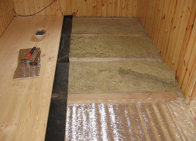 Si un plancher en bois est isolé, des bûches sont posées et un matériau isolant thermique (argile expansée, laine minérale, polystyrène) est placé dans l'espace entre eux. Ensuite, pour niveler la surface, des panneaux et des substrats à partir de matériaux produits en feuilles, par exemple du contreplaqué, sont utilisés.