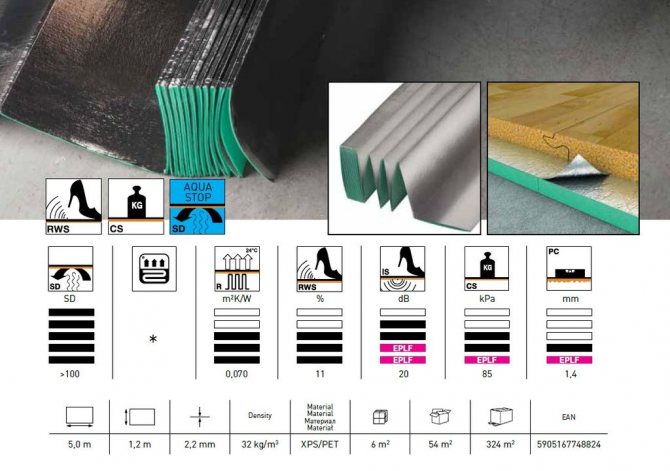 La feuille est également largement utilisée pour isoler le sol sous le stratifié. Ce matériau est produit sous forme de plaques et de rouleaux. La particularité d'un tel radiateur pour un stratifié est qu'il :