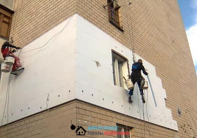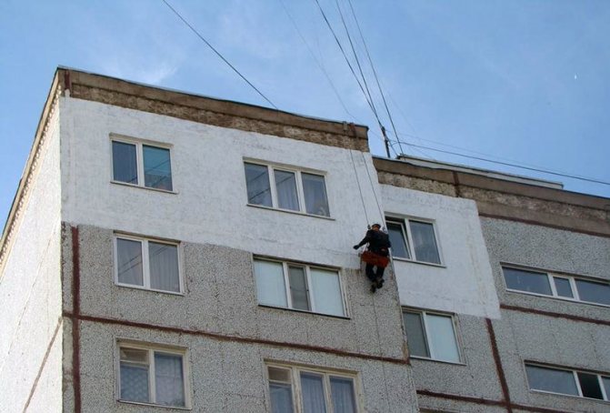 Par rapport à l'isolation des murs intérieurs, l'isolation externe présente un certain nombre d'avantages, car elle est plus efficace, ne réduit pas la surface des pièces et est réalisée à tout moment de l'année sans réinstaller les résidents. Son seul inconvénient est que vous ne pourrez pas effectuer vous-même ces travaux si votre appartement ne se trouve pas au premier étage d'un immeuble de plusieurs étages. Ce type de service est généralement fourni par des grimpeurs industriels qui ont tous les permis pour travailler en hauteur.