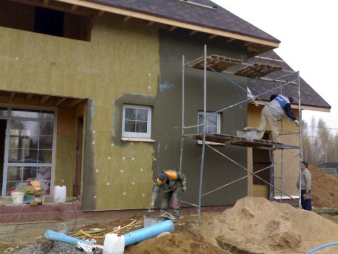 - Lors de l'isolation d'une maison en panneaux avec du penoplex, puis de la finition avec du plâtre, la procédure de revêtement doit être effectuée en une seule fois. Sinon, vous pourriez être confronté au fait que les articulations peuvent être visibles à l'œil nu.