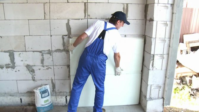 Pour l'isolation thermique des murs en panneaux, des dalles en mousse plastique PSB-S-25 (35) sont utilisées, qui ont une densité accrue. Ils sont fixés sur la surface avec un adhésif spécial ou pour carrelage, ce qui devrait assurer un remplissage maximal de l'espace entre le mur et l'isolant.