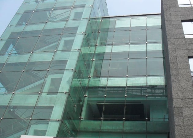 Fixation par araignée Pour plusieurs mètres aux maisons modernes et aux chalets, le vitrage avant continu de type jumbo est utilisé. De grands verres y sont utilisés, dont la largeur et la hauteur dépassent souvent 6 mètres. Grâce à des dimensions aussi impressionnantes, ils vous permettent de créer un revêtement sans coutures. En raison du poids important des matériaux de parement, il est rarement utilisé sur les immeubles de grande hauteur, mais d'un autre côté, il est idéal pour la décoration de divers magasins et bâtiments privés.