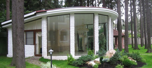- Le vitrage panoramique ou structurel est une façade de bâtiment entièrement encadrée. En raison de la présence du cadre, ils sont dotés non seulement d'un bel extérieur, mais également d'un renforcement supplémentaire des murs. Cette technologie est utilisée lors de travaux sur des façades complexes, ainsi que si une isolation de la maison est nécessaire, car une certaine distance reste entre la charpente, le revêtement et le bâtiment, dans lequel l'isolation est ensuite installée. Ce type de vitrage est plus cher que le faux;