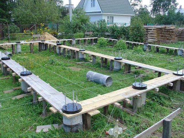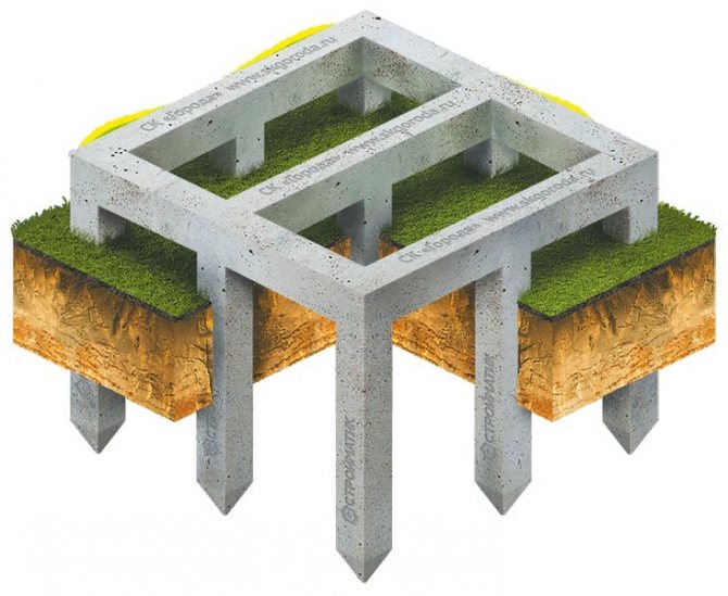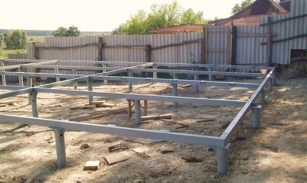 Lors de la fabrication d'une base à vis, au lieu de piliers monolithiques, des pieux sont utilisés, qui sont vissés dans le sol.