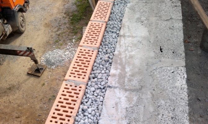 Pour commencer, vous devez ouvrir une tranchée autour du périmètre du bâtiment, le fond de la tranchée est fait avec une pente dans la direction de la maison, ce qui aidera à détourner les eaux souterraines des structures de fondation.
