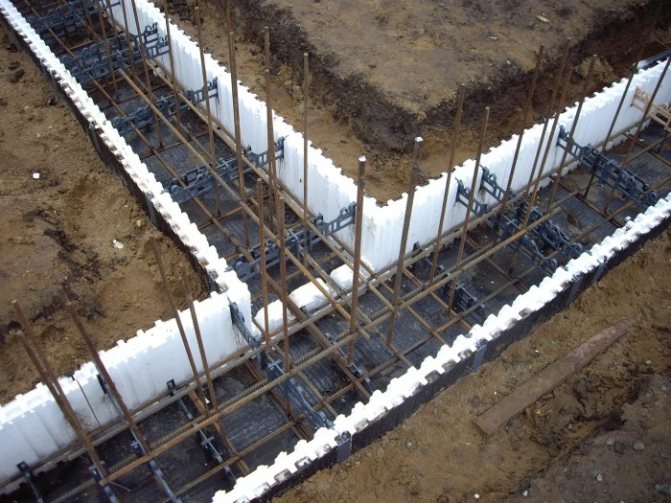 Pour la construction de maisons en bois et à ossature, dans la plupart des cas, des fondations peu profondes sont utilisées. Ils sont réalisés en béton ou en brique sous la forme d'une structure en bande ou en dalle. Il est préférable d'isoler une telle fondation de l'extérieur. La couche d'isolation thermique est située à une distance d'environ 1,5 m, derrière laquelle une couche de sol sans gel est créée.