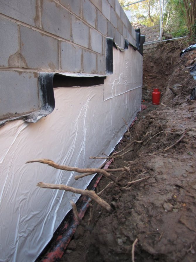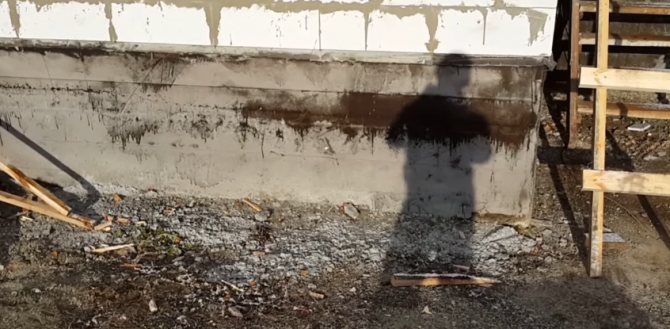 - La fondation est nettoyée de la saleté et imperméabilisée avec du mastic polymère ou bitumineux.