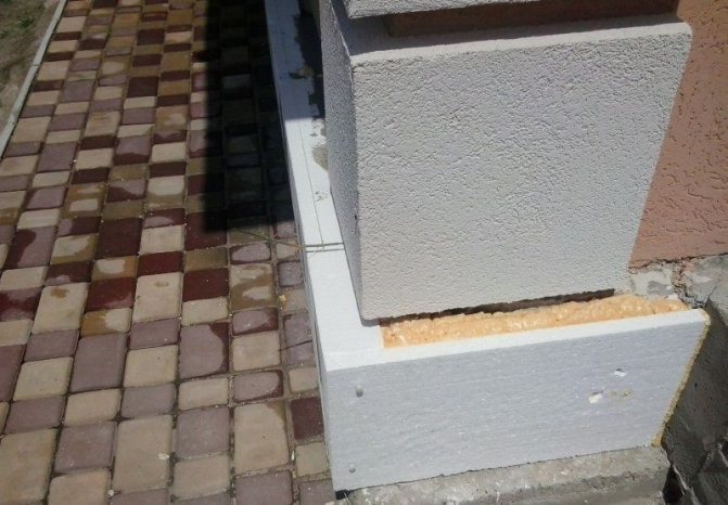Le moyen le plus efficace (et aussi le plus coûteux) consiste à isoler la zone aveugle avec du polystyrène extrudé. Le plus souvent, des plaques de polystyrène d'une épaisseur de 50 mm sont utilisées. Ils sont posés sur la couche sous-jacente de la zone aveugle et fermés sur le dessus avec un matériau d'étanchéité dense pour isoler les joints.
