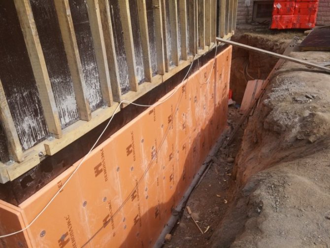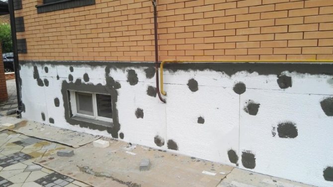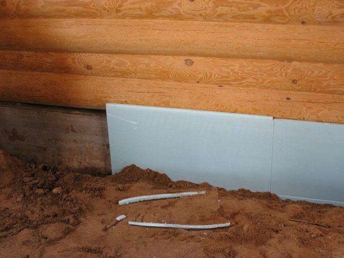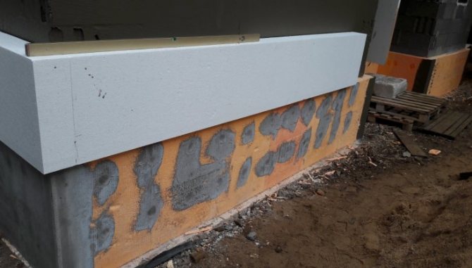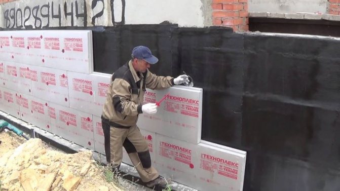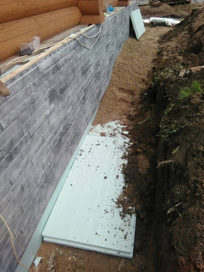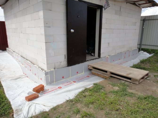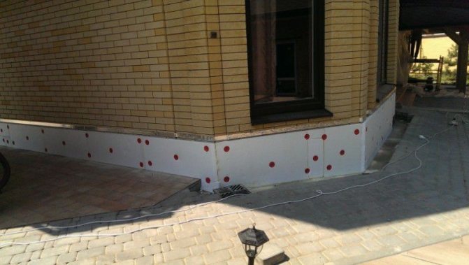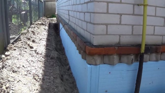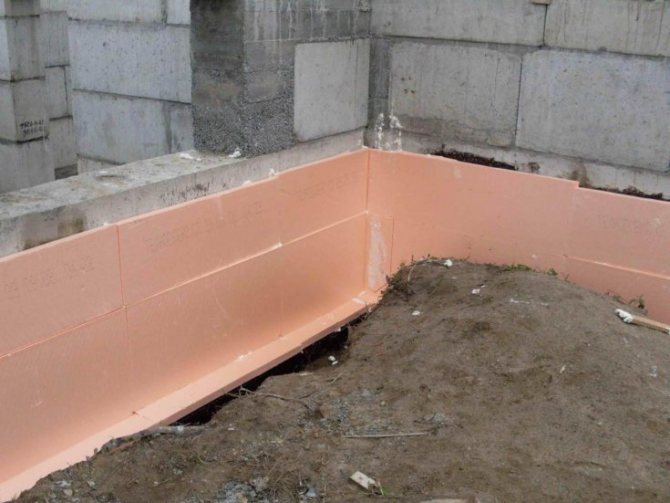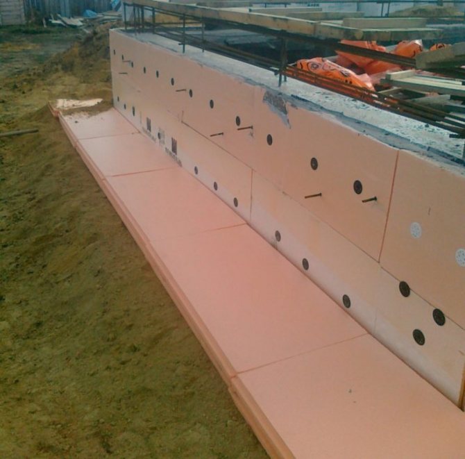 Isolation de la fondation avec de la mousse de polystyrène extrudé. Le matériau est similaire au polystyrène, mais plus résistant que lui et contient des cellules à air qui augmentent ses propriétés d'isolation thermique. Il est produit sous forme de plaques, pratique pour l'installation.