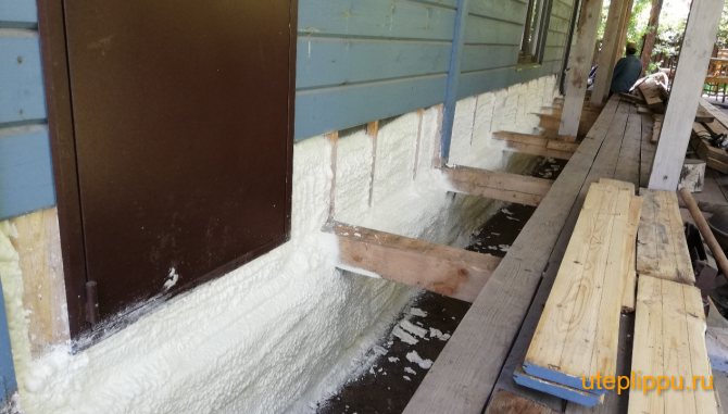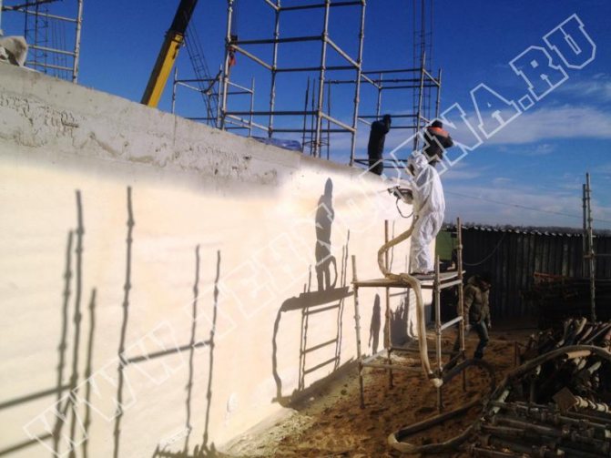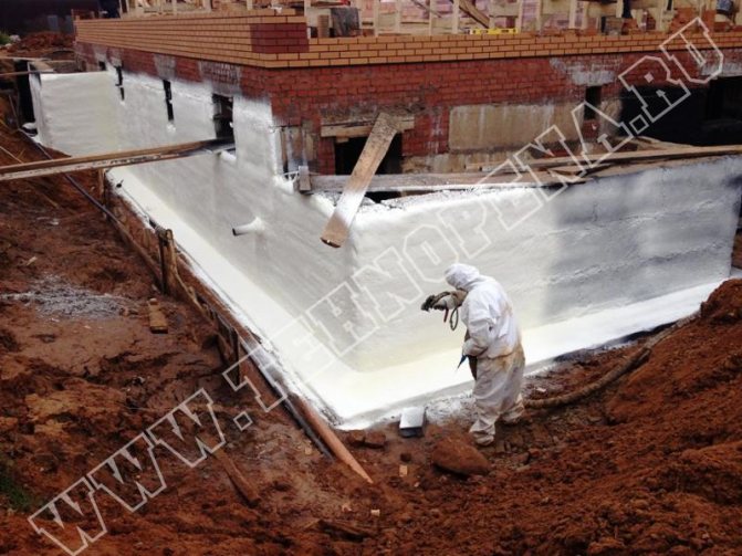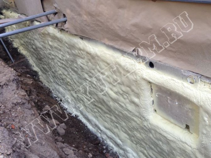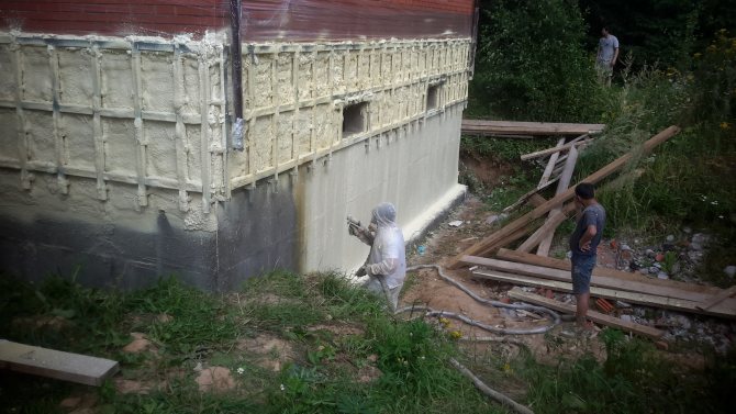 - l'utilisation de mousse de polyuréthane pulvérisée vous permet de créer une couche uniforme et uniforme d'isolation thermique, de sorte que vous pouvez éviter la formation de ponts froids et travailler même avec des surfaces de fondation géométriquement complexes;