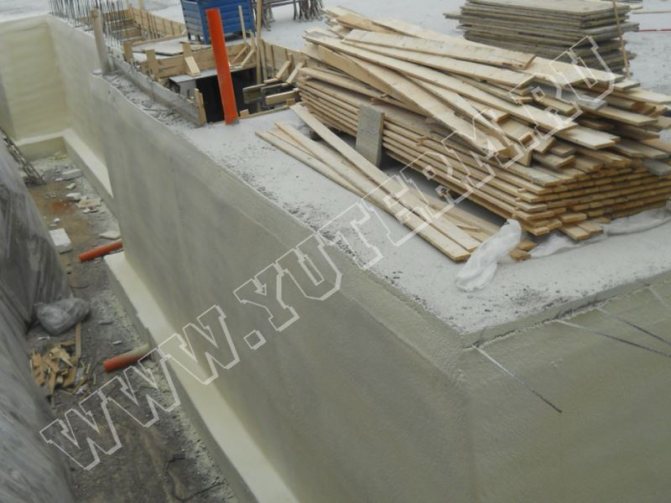 Il peut être appliqué sur les surfaces intérieures et extérieures des murs de fondation. L'isolation thermique interne est réalisée s'il n'est pas possible de réaliser une projection PPU externe. Lors du processus d'isolation de la structure enterrée du bâtiment, de la mousse est appliquée sur toute la surface des murs de la fondation le long de son périmètre; une couche d'isolation thermique d'au moins 60 mm est considérée comme fiable.