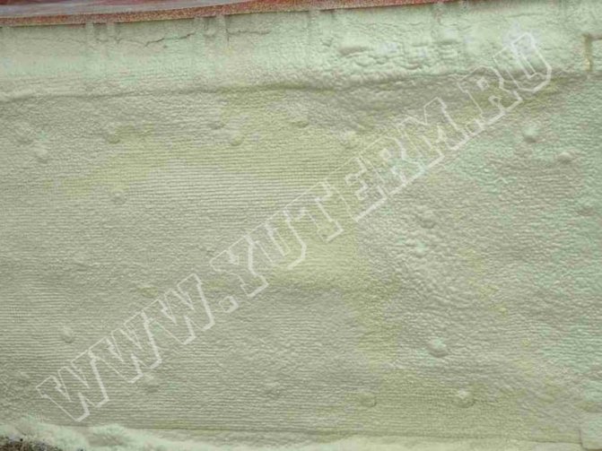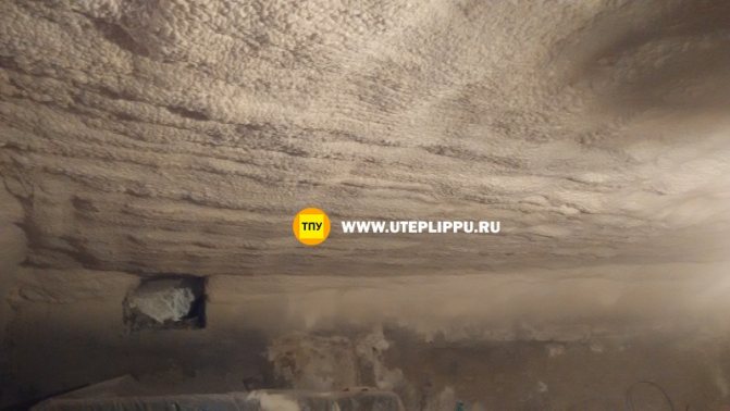 La principale différence caractéristique de l'isolation du sous-sol avec de la mousse de polyuréthane (PPU) est la façon dont elle est appliquée. Initialement, le matériau est représenté par deux composants liquides qui, après mélange, forment une mousse dense. Il augmente rapidement son volume puis durcit, créant une structure poreuse avec d'excellentes caractéristiques d'isolation thermique: