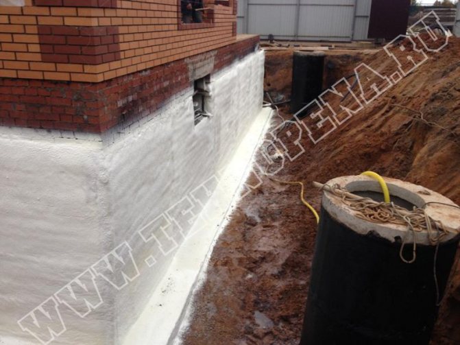 Ce qui suit peut être dit sans équivoque: Dans les conditions de notre pays, pour la fondation, l'isolation thermique et l'imperméabilisation (avec de la polyurée ou d'autres moyens) doivent être prévues dans le projet et réalisées au stade de la construction d'une maison. Cela donnera une garantie de chaleur et d'absence d'humidité, de champignons au sous-sol, au sous-sol, dans la partie inférieure des murs du premier étage pendant des décennies.