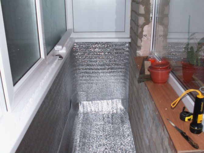 Un détail important: Il est préférable d'utiliser un matériau en feuille pour le processus d'isolation, qui a une capacité si importante: il reflète parfaitement la chaleur. De plus, il n'est pas du tout difficile d'isoler une loggia à l'aide d'un matériau isolon.