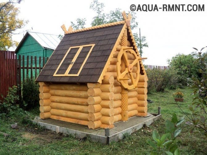 - le puits à tête ouverte peut également geler, car la différence de température entre l'eau et l'air peut être supérieure à 30 degrés, vous devez donc isoler le puits de vos propres mains, par exemple installer une maison en bois;