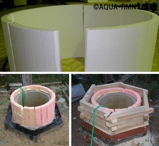 Le seul inconvénient important du polystyrène expansé est qu'il "craint" les rayons ultraviolets. Pour faire face à ce problème, en principe, est assez simple: vous devez peindre la coque avec de la peinture à l'huile ou la fermer avec du papier d'aluminium ou du papier de couverture. Le coût de cette méthode d'isolation dépend du diamètre et de la hauteur des anneaux de puits. Il est préférable de fabriquer des coques en polystyrène sur commande; après tout, les puits peuvent varier en taille.