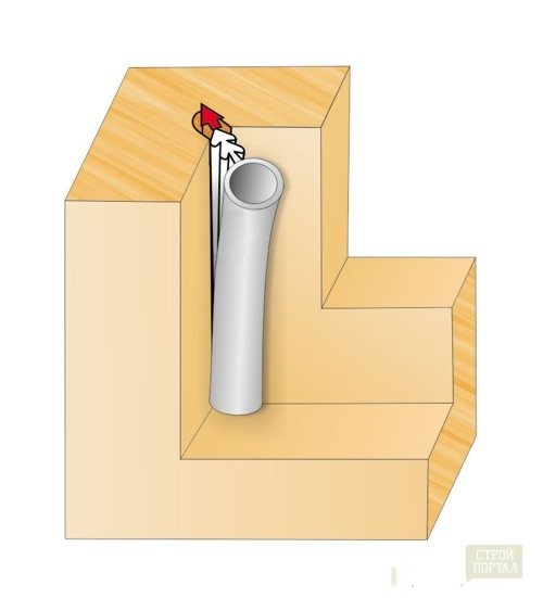 À l'aide d'une toupie, découpez une rainure ne dépassant pas un demi-centimètre de profondeur et jusqu'à trois millimètres de large. Lorsque vous vous approchez des zones où se trouvent les boucles, laissez un espace d'un centimètre et demi entre elles et la rainure.