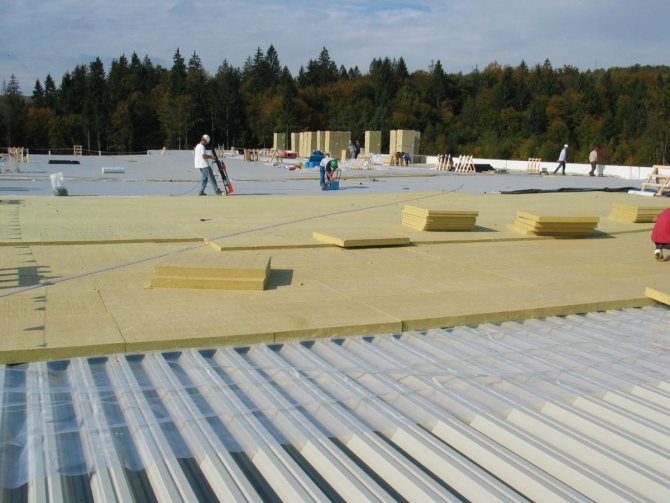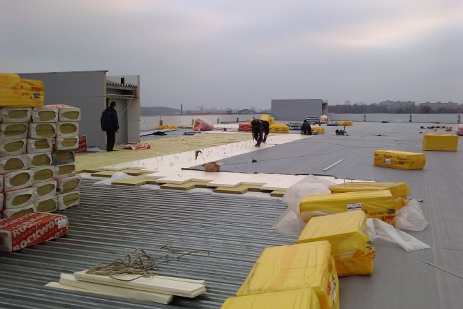 Un avertissement! Lors de l'installation d'un toit plat, il est interdit d'utiliser une feuille de polystyrène comme isolant. Cela est dû à la courte durée de vie de ce matériau, au danger probable pour la santé humaine et à sa sécurité incendie relative.