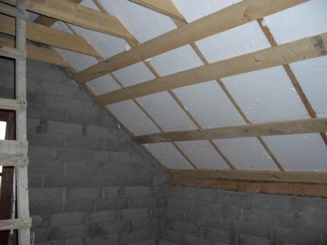 La façon classique d'isoler le toit de l'intérieur de la maison est la suivante: