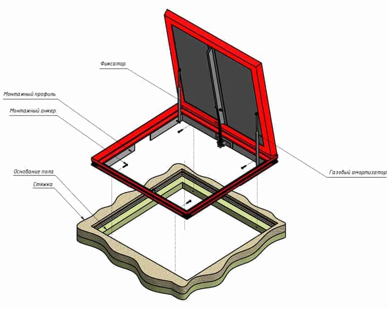 Une trappe en acier peut être fabriquée à la fois dans le garage et dans la maison, il vous suffit de la recouvrir de bois ou du matériau à partir duquel le sol de la pièce est fabriqué.