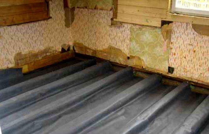 - Pour un sol avec isolation, des barres de 30x50 ou 50x50 mm sont fixées à la partie inférieure de la bûche, sur laquelle un sol rugueux est posé à partir d'une fine planche non bordée de 20 mm d'épaisseur.