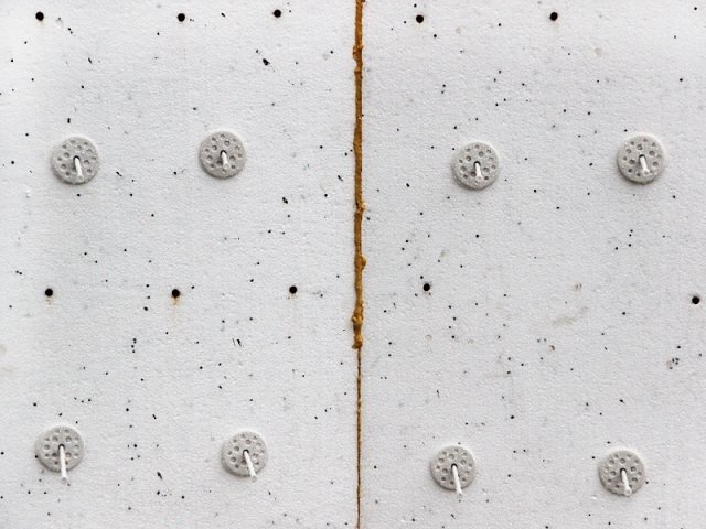 Une fois que tout le plan est collé avec des pièces en mousse, ils peuvent être en outre fixés avec des chevilles à tête large et les coutures sont remplies de mastic ou de mousse de polyuréthane.