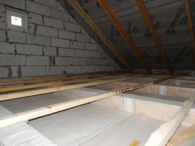 Si le grenier est prévu pour être utilisé comme grenier, l'isolation thermique doit se composer de trois couches: pare-vapeur (posé avec le côté rugueux vers le bas, lisse - vers l'isolation thermique), isolation thermique et imperméabilisation