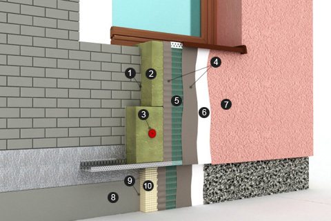 La couche d'isolation thermique dans les systèmes de façade est constituée de mousse de polystyrène extrudé ou ordinaire, ainsi que de laine minérale stratifiée ou ordinaire. Les deux types de matériaux sont fournis sous forme de dalles. La laine minérale est fabriquée à partir de verre, de soude, de calcaire et de sable. Sa structure est représentée par de fines fibres vitreuses. Positivement caractérisé par une perméabilité à la vapeur élevée.
