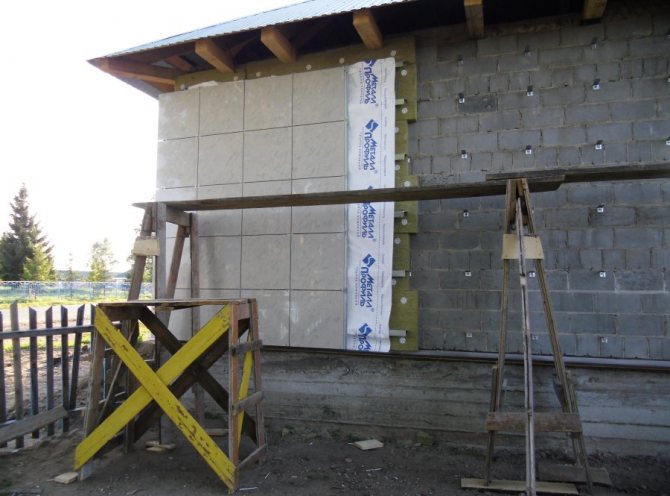 Le réchauffement et la finition des façades dans ce cas présupposent la présence de matériau de parement. Le plus souvent, ils utilisent des parements, des doublures, des panneaux composites, etc. L'isolation à faire soi-même des maisons à l'extérieur nécessitera un dispositif à ossature pour la fixation du revêtement. Les instructions étape par étape sont les suivantes :