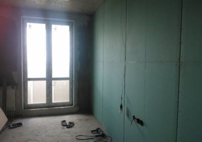 (jusqu'à 40 millimètres), puis deux couches de plaques de plâtre sont créées: la première est une bande (bandes de 10 centimètres), la seconde est solide, des feuilles de cloison sèche non divisées sont utilisées.