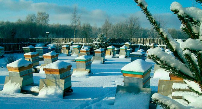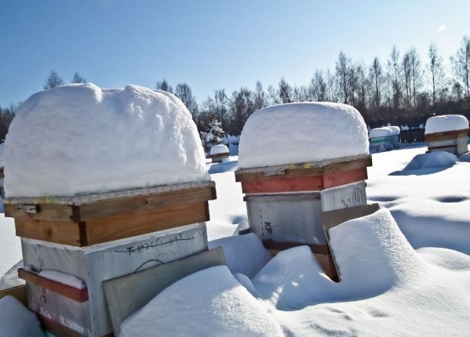 La variante de l'hivernage des insectes à l'extérieur sous la neige est utilisée par les apiculteurs ayant une vaste expérience. Il est nécessaire d'éliminer toutes les fissures en isolant à l'automne et en recouvrant les ruches de neige.