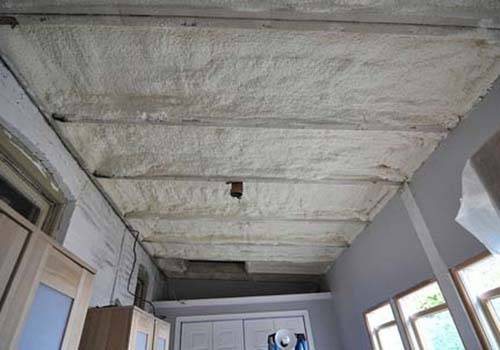 La technologie d'isolation de plafond la plus simple est sans cadre. Mais seule une isolation dure lui convient. Les dalles de mousse sont installées directement au plafond sans structures supplémentaires. Après cela, la surface du plafond est recouverte d'un treillis et d'un mastic spéciaux.