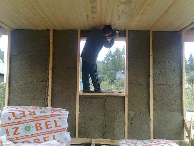 - Une fois les murs de la maison secs, vous pouvez recouvrir l'isolation avec du plâtre décoratif.