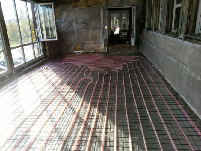 Le réchauffement de la véranda commence par l'isolation thermique du sol. Surtout dans de telles pièces, une base en béton est faite, cela peut être clairement vu dans la vidéo. Si le chauffage de l'extension en bois est prévu avec la technologie "sol chaud", il est préférable de choisir un système électrique. Il peut être activé selon les besoins. Le chauffage de l'eau sur une véranda en bois ne doit pas être installé, car à basse température, les tuyaux peuvent geler et se déformer, vous devrez donc changer complètement le système.