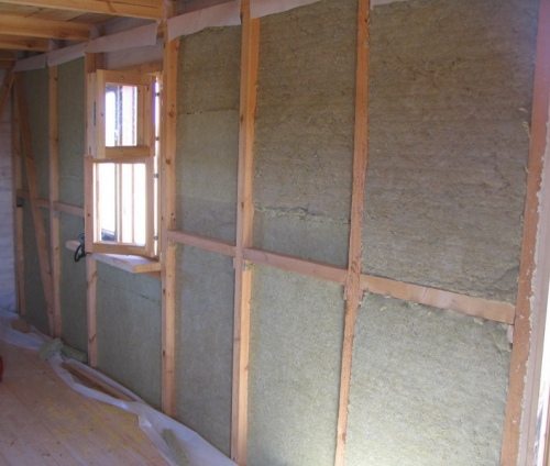 - procéder à la pose du matériau isolant sur le matériau d'étanchéité. Observez la densité de l'isolant dans l'espace entre les lattes. Il ne doit y avoir aucun espace entre les dalles du matériau et les lattes de bois. Pour cela, la distance entre les lattes est rendue inférieure à la largeur du matériau isolant.