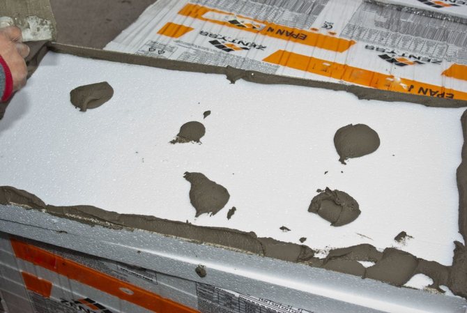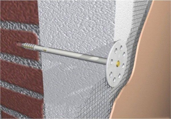 - Appliquez de la colle spéciale sur la plaque de polystyrène expansé autour du périmètre et en plusieurs points, puis appuyez-la contre le mur au bon endroit, puis fixez-la dans les coins et au milieu à l'aide de chevilles avec de larges rondelles en plastique.