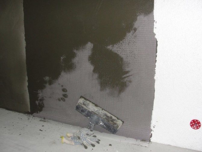 - Pour renforcer le plâtre, un renforcement avec un treillis en fibre de verre de façade est utilisé. Le nombre de structures en béton armé est sélectionné en tenant compte des paramètres du mur.