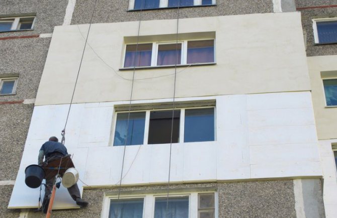 Cette méthode est la plus efficace, car elle permet d'éliminer le plus possible le point de rosée à l'extérieur de la pièce, évitant ainsi la formation de condensation et empêchant le mur de geler. Cependant, sa mise en œuvre nécessite l'utilisation de matériaux plus coûteux, et dans le cas de l'isolation d'un appartement dans un immeuble à plusieurs étages, l'utilisation d'équipements spéciaux ou les services de grimpeurs industriels seront nécessaires.