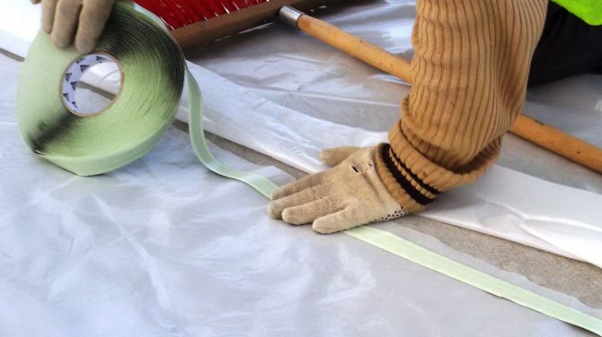- Pare-vapeur. Tout d'abord, un pare-vapeur est fixé à la base. Gardez à l'esprit que la toile est posée de manière à ce que la vapeur s'échappe de la pièce vers la rue et que l'humidité est bloquée à l'arrière.
