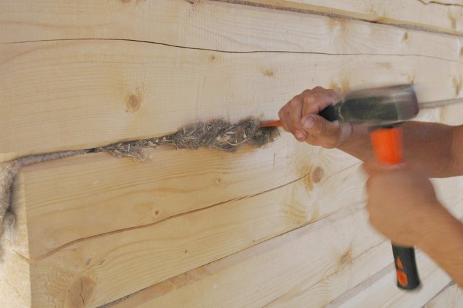 Cette technologie d'isolation des murs d'une maison en bois de l'intérieur implique l'étanchéité des joints et des coutures. Il est utilisé lorsqu'il est nécessaire de laisser un mur en bois sans finition ni décoration. Dans ce cas, seuls les joints entre bûches ou poutres sont isolés avec le matériau, réduisant ainsi la conductivité thermique des joints et des coutures.