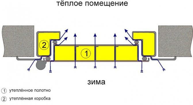 Une porte métallique à températures négatives à l'extérieur de la pièce et positives à l'intérieur, d'une part, refroidit et, d'autre part, se réchauffe. Cela conduit à la formation de condensation à l'intérieur du boîtier. Des gouttes d'eau coulant sur des feuilles de laine minérale ou de roche l'hydrateront. L'isolation humide n'est pas en mesure de protéger complètement l'intérieur des fuites de chaleur.