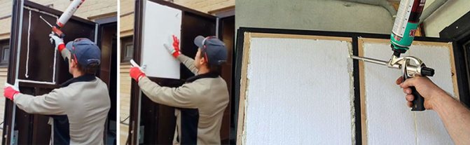 Si la porte est creuse, le matériau isolant est posé à l'intérieur de la structure. Lors de l'utilisation de modèles non séparables, le matériau est fixé à la surface de la toile avec de la colle ou de toute autre manière pratique. En règle générale, lorsque vous travaillez seul, les matériaux suivants sont utilisés: