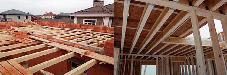 Les plafonds en bois peuvent être disposés dans les maisons à partir de n'importe quel matériau, à l'exception du béton armé monolithique. Ils sont érigés en même temps que la construction des murs, car ces derniers sont érigés à la hauteur de l'étage suivant. Dans les bâtiments à ossature bois, les planchers peuvent être réalisés simultanément avec la construction de la charpente de l'ensemble du bâtiment, avant même qu'il ne soit isolé et habillé.